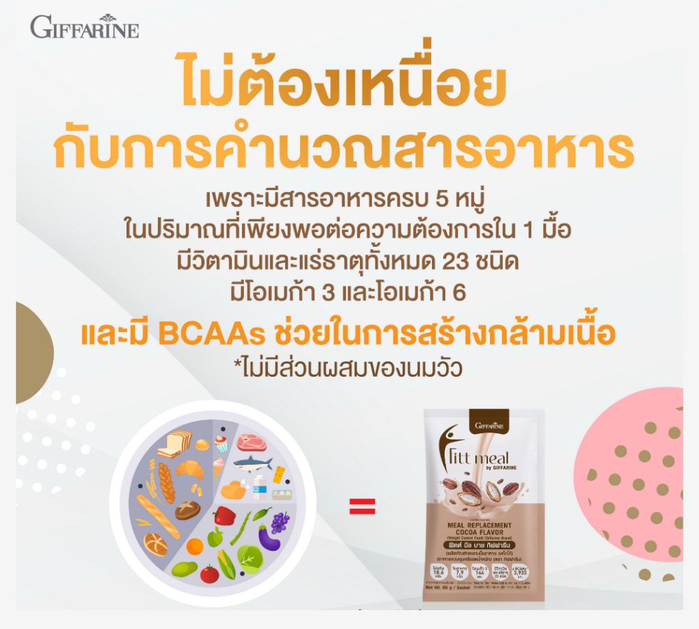 ฟิตต์ มีล บาย กิฟฟารีน ผลิตภัณฑ์ทดแทนมื้ออาหาร รสโกโก้ (อาหารควบคุมหรือลดน้ำหนัก)