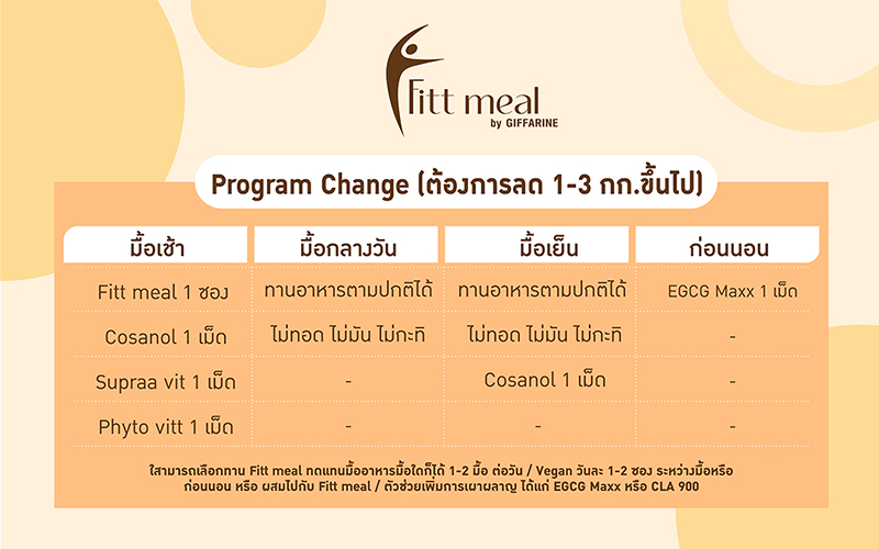 ฟิตต์ มีล บาย กิฟฟารีน ผลิตภัณฑ์ทดแทนมื้ออาหาร รสกล้วย (อาหารควบคุมหรือลดน้ำหนัก)